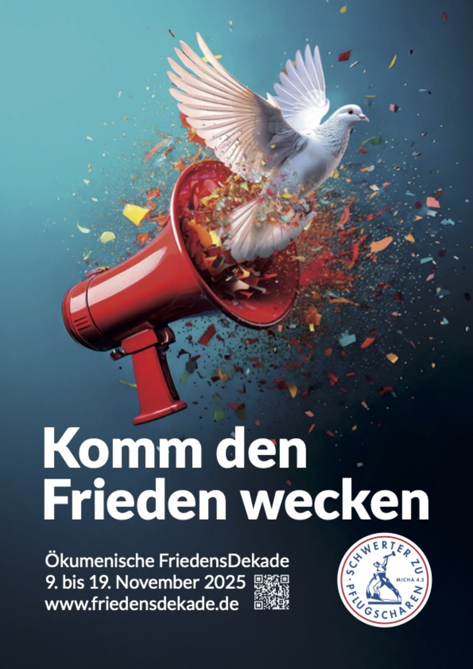 „Komm den Frieden wecken!“ – unter diesem Motto steht die 45. Ökumenische FriedensDekade vom 9. bis 19. November 2025. In einer Zeit, die von Kriegen, Klimakrise und sozialer Spaltung geprägt ist, ruft die Friedensbewegung dazu auf, Frieden aktiv zu gestalten: durch Dialog, gewaltfreie Lösungen und gelebte Versöhnung.