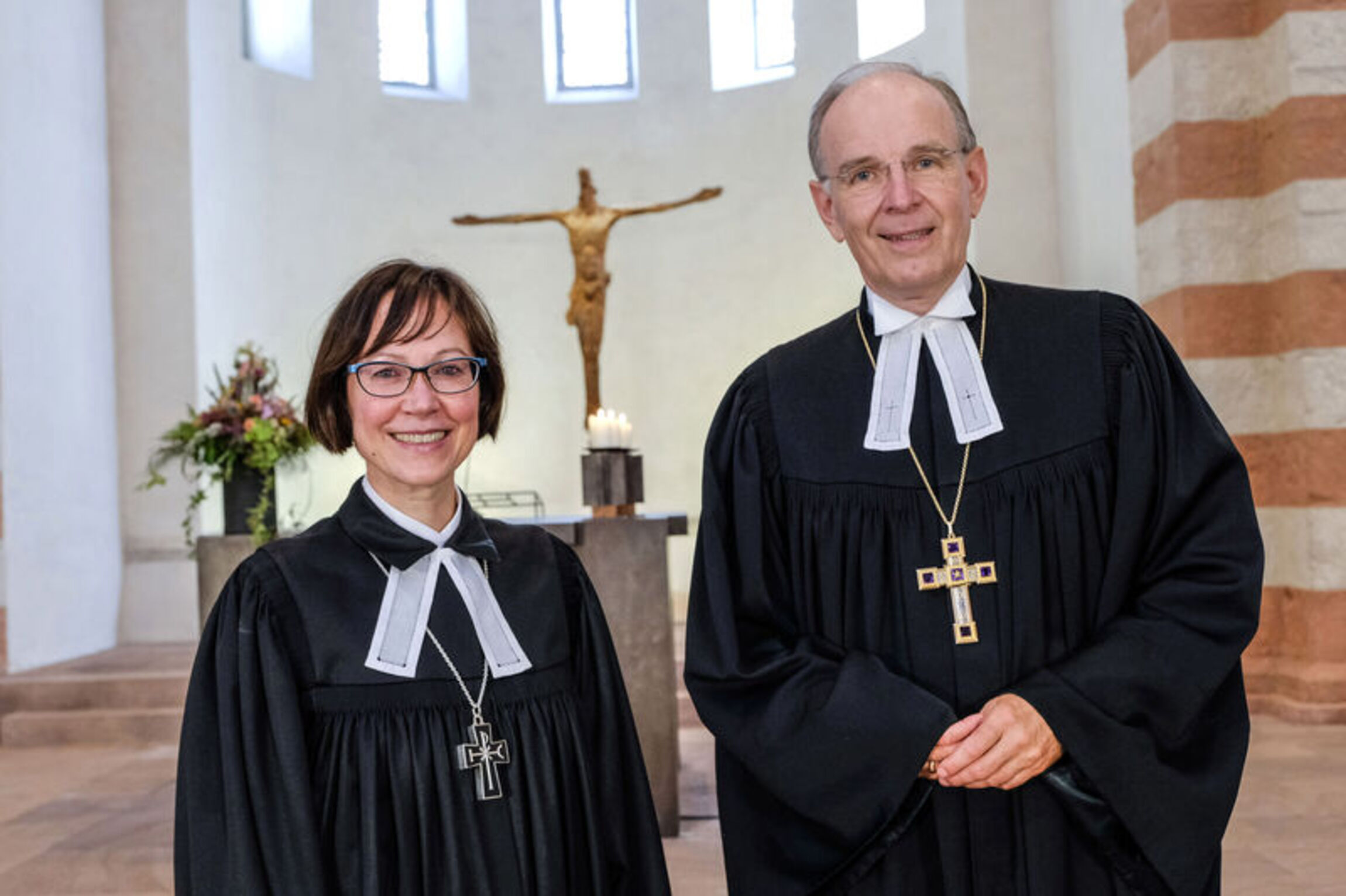Mit einem Gottesdienst wurde am Samstag, 17. Juli 2021, Dr. Adelheid Ruck-Schröder als Regionalbischöfin des Sprengels Hildesheim-Göttingen von Hannovers Landesbischof Ralf Meister in ihr neues Amt eingeführt. „Wir freuen uns, eine große Verstehenshelferin als Regionalbischöfin in unserer Kirche zu haben“, sagte Meister bei der Einführung in der Hildesheimer Michaeliskirche. Zugleich entpflichtete er den langjährigen Regionalbischof Eckhard Gorka von seinen Aufgaben und verabschiedete ihn in den Ruhestand. Unter den Gottesdienstbesucher*innen waren auch der niedersächsische Kultusminister Grant Henrik Tonne und der Bischof des römisch-katholischen Bistums Hildesheim, Dr. Heiner Wilmer.